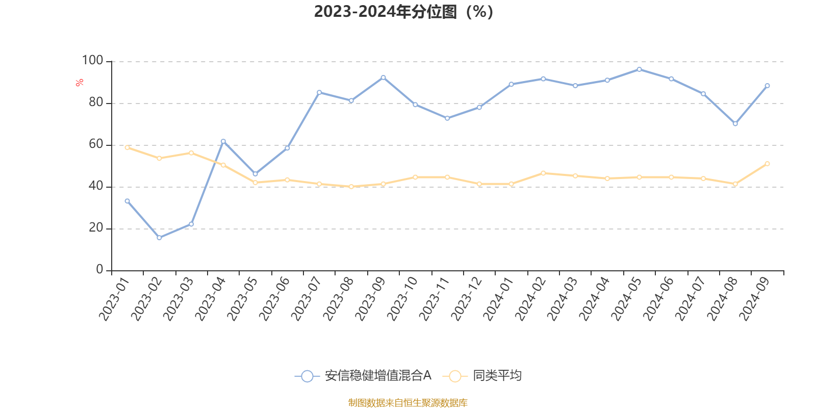 通过所选区间该基金净值增长率分位图,可以观察该基金与同类基金业绩比较情况。图为坐标原点到区间内某时点的净值增长率在同类基金中的分位数。
