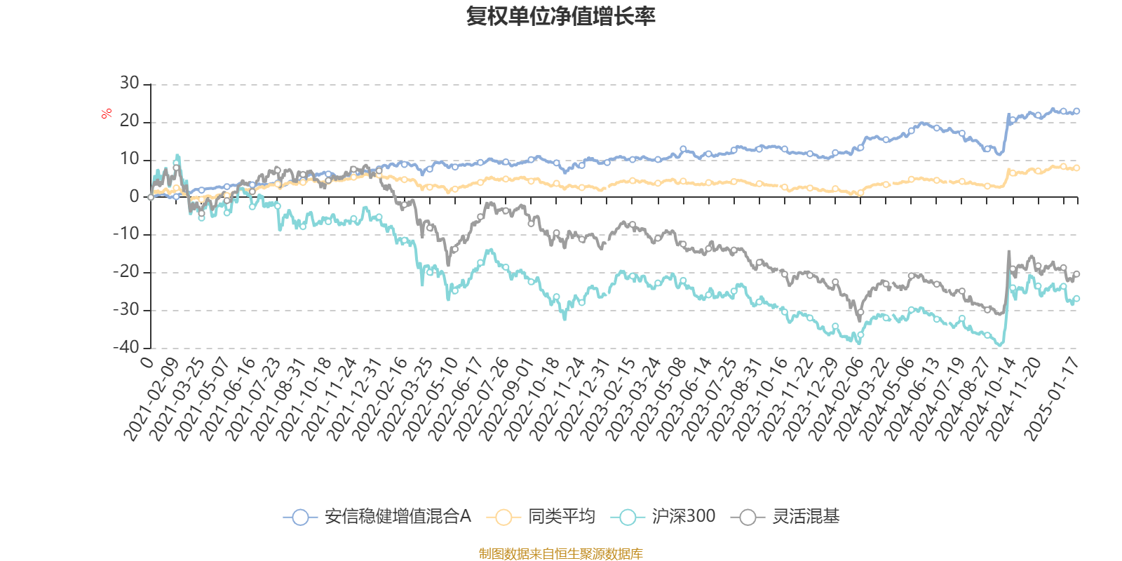 截至1月17日,安信稳健增值混合A近三个月复权单位净值增长率为2.34%,位于同类可比基金41/155;近半年复权单位净值增长率为5.04%,位于同类可比基金43/155;近一年复权单位净值增长率为10.00%,位于同类可比基金21/155;近三年复权单位净值增长率为13.88%,位于同类可比基金9/154。