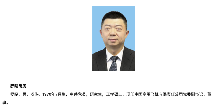 罗晓任中国商飞党委副书记、董事