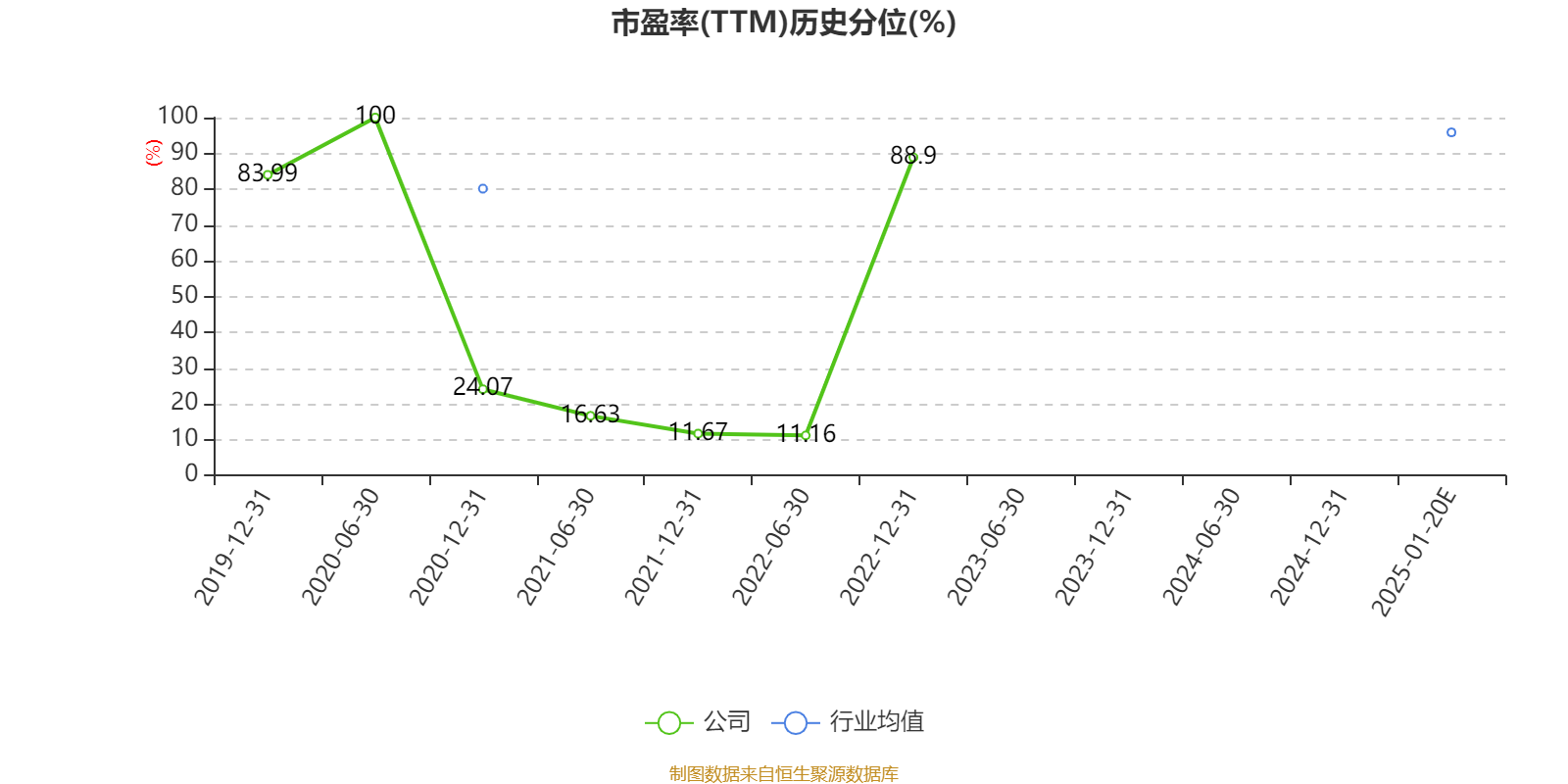 以本次披露业绩预告均值计算,公司近年市盈率(TTM)图如下所示: