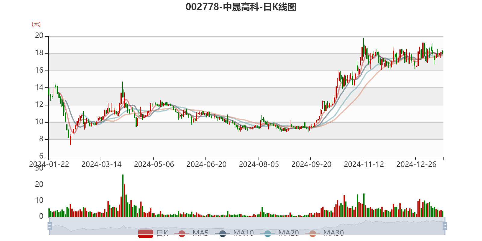 中证智能财讯中晟高科(002778)1月20日晚间披露2024年度业绩预告,预计2024年归母净利润亏损1.55亿元至2亿元,上年同期亏损1.55亿元;扣非净利润亏损1.63亿元至2.08亿元,上年同期亏损1.53亿元;基本每股收益-1.24元/股至-1.6元/股。以1月20日收盘价计算,中晟高科目前市盈率(TTM)约为-11.32倍至-14.6倍,市净率(LF)约5.84倍,市销率(TTM)约4.86倍。