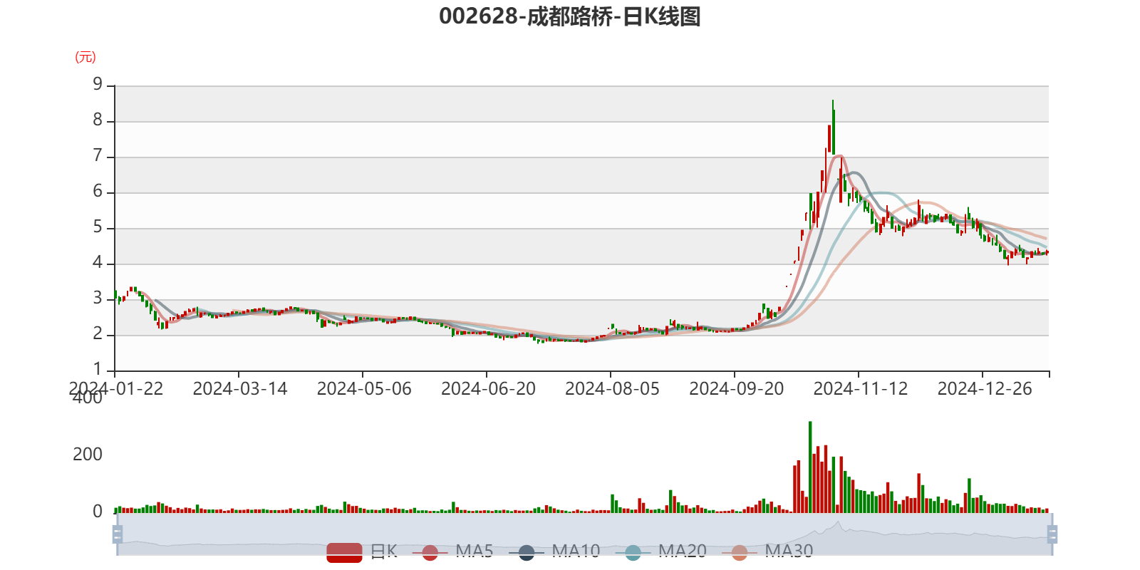 中证智能财讯成都路桥(002628)1月20日晚间披露2024年度业绩预告,预计2024年归母净利润亏损6855.9万元至9941.06万元,上年同期盈利449.3万元;扣非净利润亏损4705.02万元至6770.18万元,上年同期盈利1243万元;基本每股收益-0.09元/股至-0.13元/股。以1月20日收盘价计算,成都路桥目前市盈率(TTM)约为-33.05倍至-47.93倍,市净率(LF)约1.11倍,市销率(TTM)约3.87倍。
