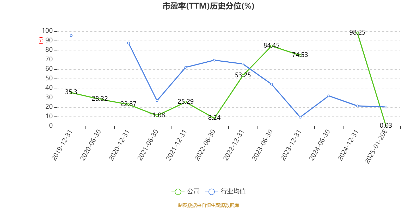 市盈率、市净率为负时,不显示当期分位数,会导致折线图中断。