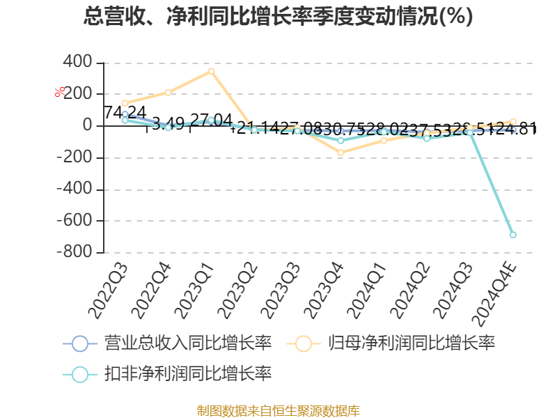 报告期末,公司持有已上市的开曼圣诺医药股份有限公司股票价格下跌及其他金融资产估值变动综合影响,致报告期内公允价值变动损失约9700万元;另外,公司对报告期末资产进行减值测试,按企业会计准则计提相关资产减值损失约15900万元。公司预计2024年非经常性损益金额约为3200万元,上年同期为-15400万元。