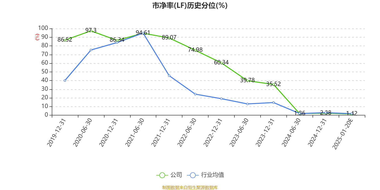 市盈率、市净率为负时,不显示当期分位数,会导致折线图中断。