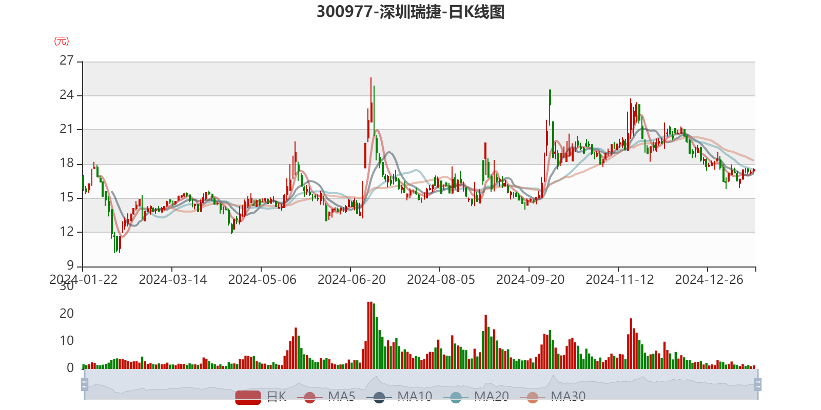 中证智能财讯深圳瑞捷(300977)1月20日晚间披露2024年度业绩预告,预计2024年归母净利润亏损2200万元至3400万元,上年同期盈利4086.64万元;扣非净利润亏损3000万元至4600万元,上年同期盈利2161.13万元。以1月20日收盘价计算,深圳瑞捷目前市盈率(TTM)约为-78.35倍至-121.09倍,市净率(LF)约1.9倍,市销率(TTM)约5.55倍。