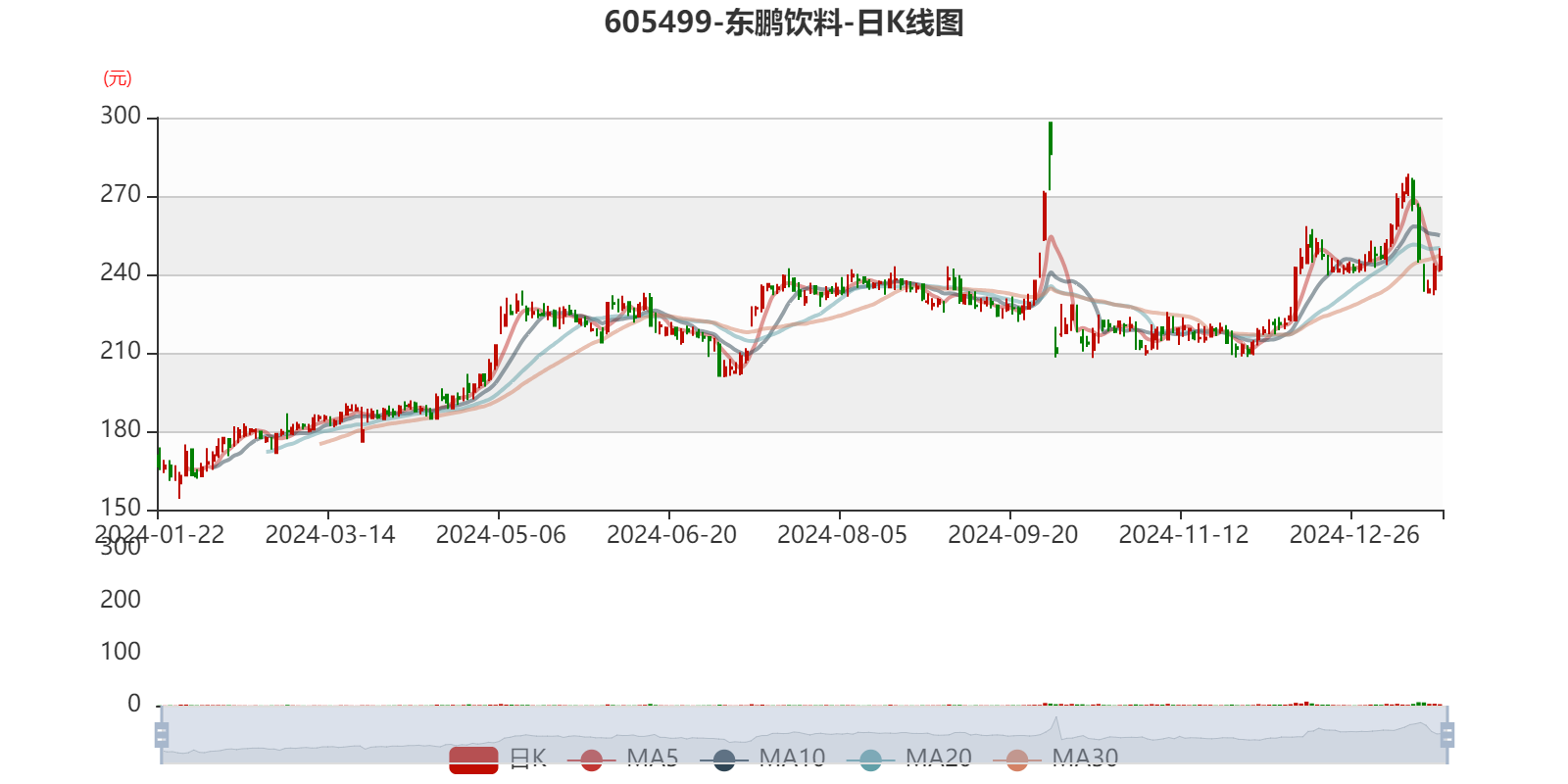2024年公司始终“以动销指导相关的经营活动”作为公司的明确共识,持续推进全国化战略,通过精细化渠道管理,不断加强渠道运营能力,继续加强冰冻化建设,提高全品项产品的曝光率、拉动终端动销;同时,公司在夯实东鹏特饮基本盘,持续保持稳健增长的基础上,积极探索多品类发展,培育新的增长点,为公司的持续增长注入了新的活力,从而进一步带动收入的增长。