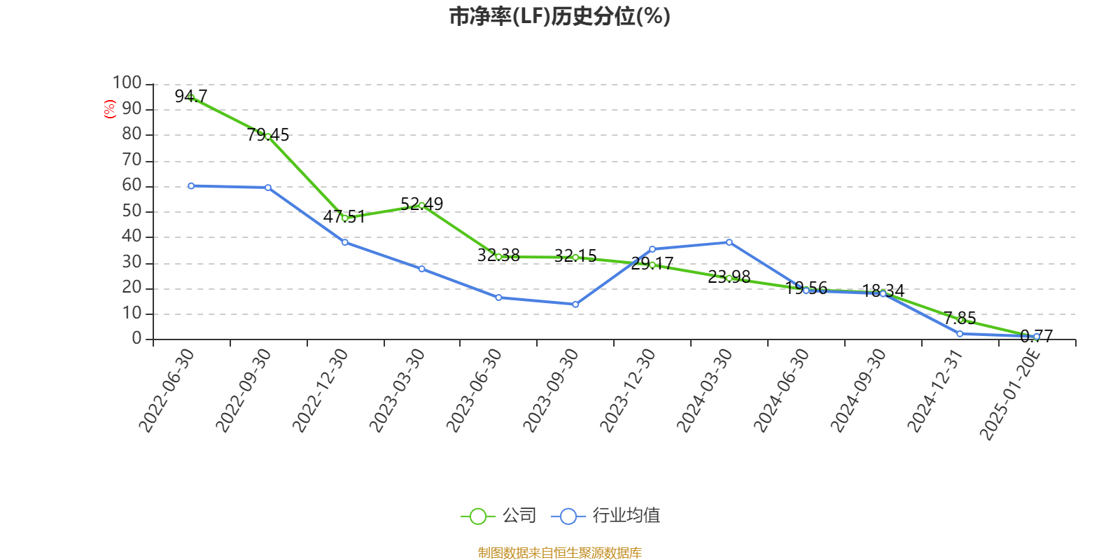 市盈率、市净率为负时,不显示当期分位数,会导致折线图中断。