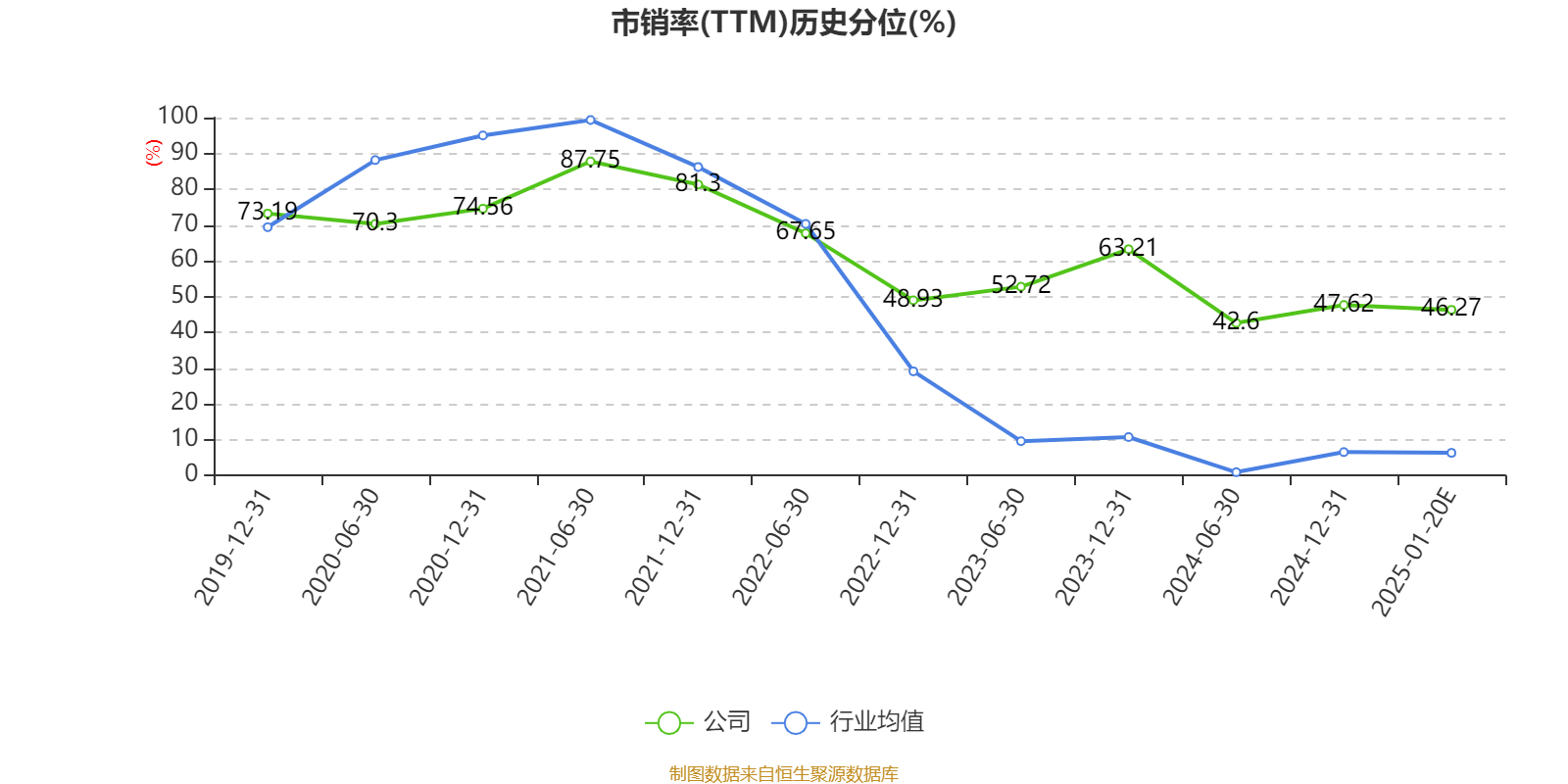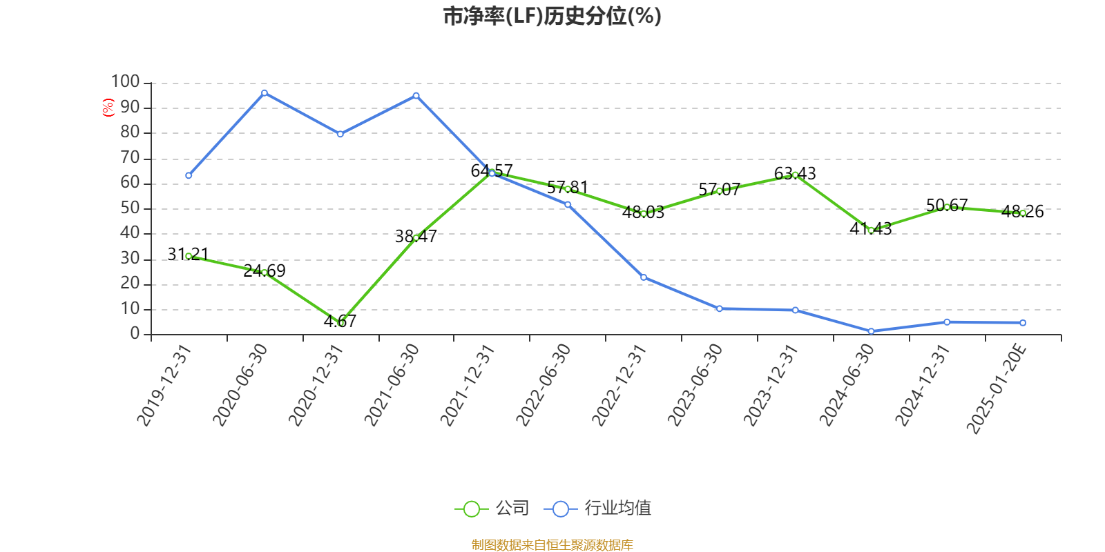 市盈率、市净率为负时,不显示当期分位数,会导致折线图中断。