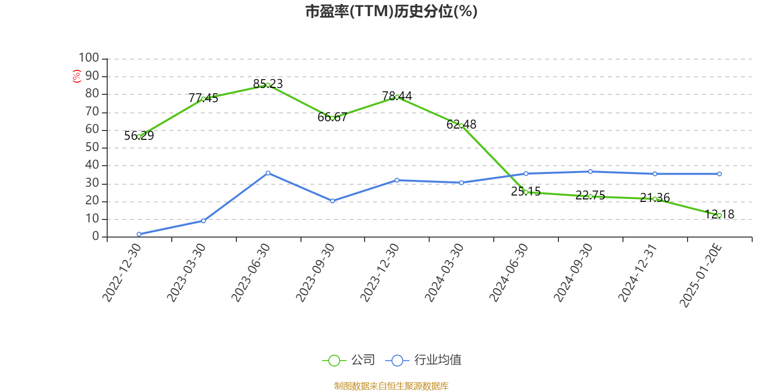 以本次披露业绩预告均值计算,公司近年市盈率(TTM)图如下所示: