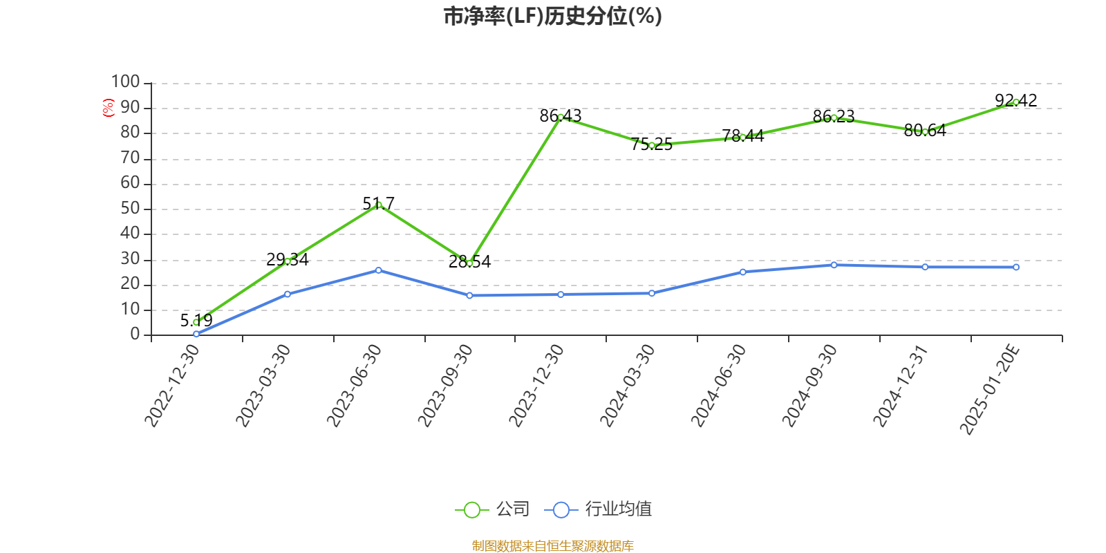 市盈率、市净率为负时,不显示当期分位数,会导致折线图中断。