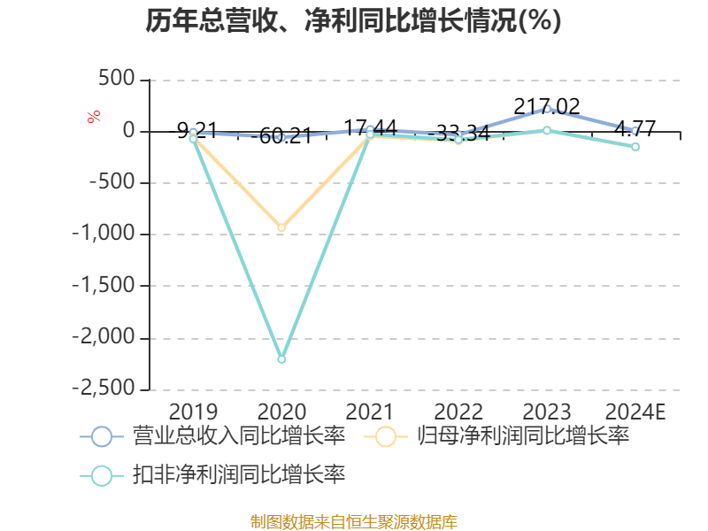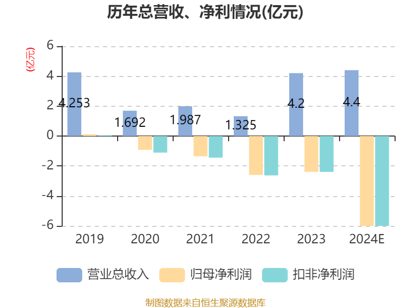 中证智能财讯张家界(000430)1月20日晚间披露2024年度业绩预告,预计2024年实现营业收入4亿元至4.8亿元;归母净利润亏损5.5亿元至6.5亿元,上年同期亏损2.39亿元;扣非净利润亏损5.5亿元至6.5亿元,上年同期亏损2.4亿元;基本每股收益-1.36元/股至-1.61元/股。以1月20日收盘价计算,张家界目前市盈率(TTM)约为-4.45倍至-5.26倍,市净率(LF)约3.59倍,市销率(TTM)约6.57倍。