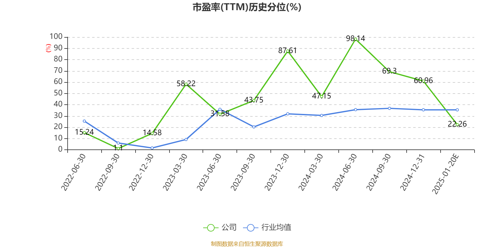 市盈率、市净率为负时,不显示当期分位数,会导致折线图中断。