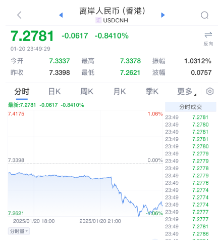 离岸人民币汇率更是一度暴涨了700点,连续收复了7.32、7.31、7.30、7.29、7.28多道关口。