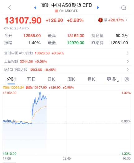 而北京1月20日晚间,全球资本市场同一时间“脉冲式”上涨!富时中国A50期货指数直线涨约1%。