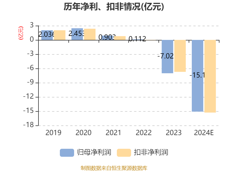 中证智能财讯 ST中装(002822)1月20日晚间披露2024年度业绩预告,预计2024年归母净利润亏损13.6亿元至16.6亿元,上年同期亏损7.02亿元;扣非净利润亏损13.8亿元至16.8亿元,上年同期亏损6.73亿元;基本每股收益-1.91元/股至-2.33元/股。以1月20日收盘价计算,ST中装目前市盈率(TTM)约为-1.54倍至-1.87倍,市净率(LF)约1.42倍,市销率(TTM)约0.82倍。