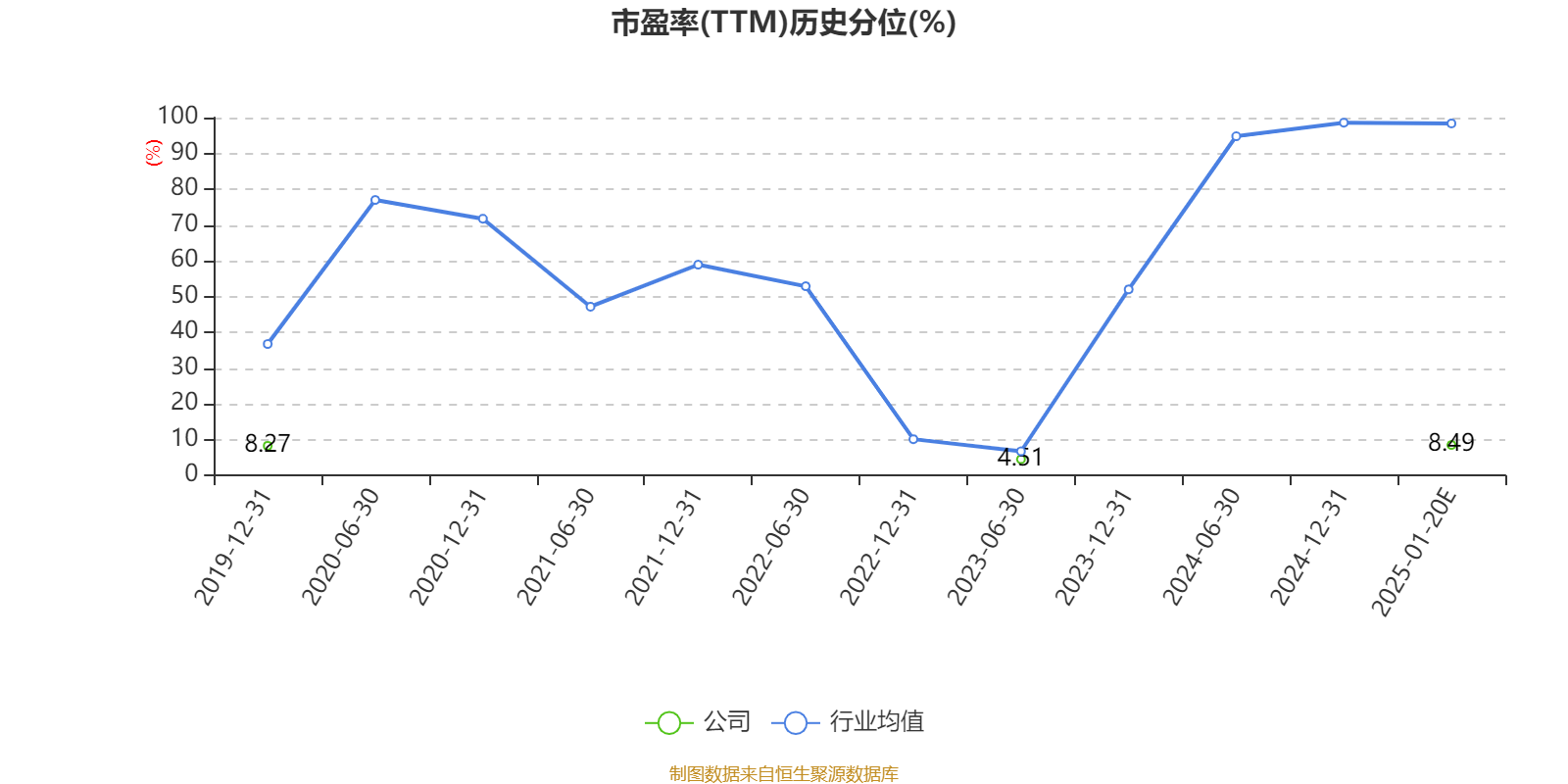 以本次披露业绩预告均值计算,公司近年市盈率(TTM)图如下所示: