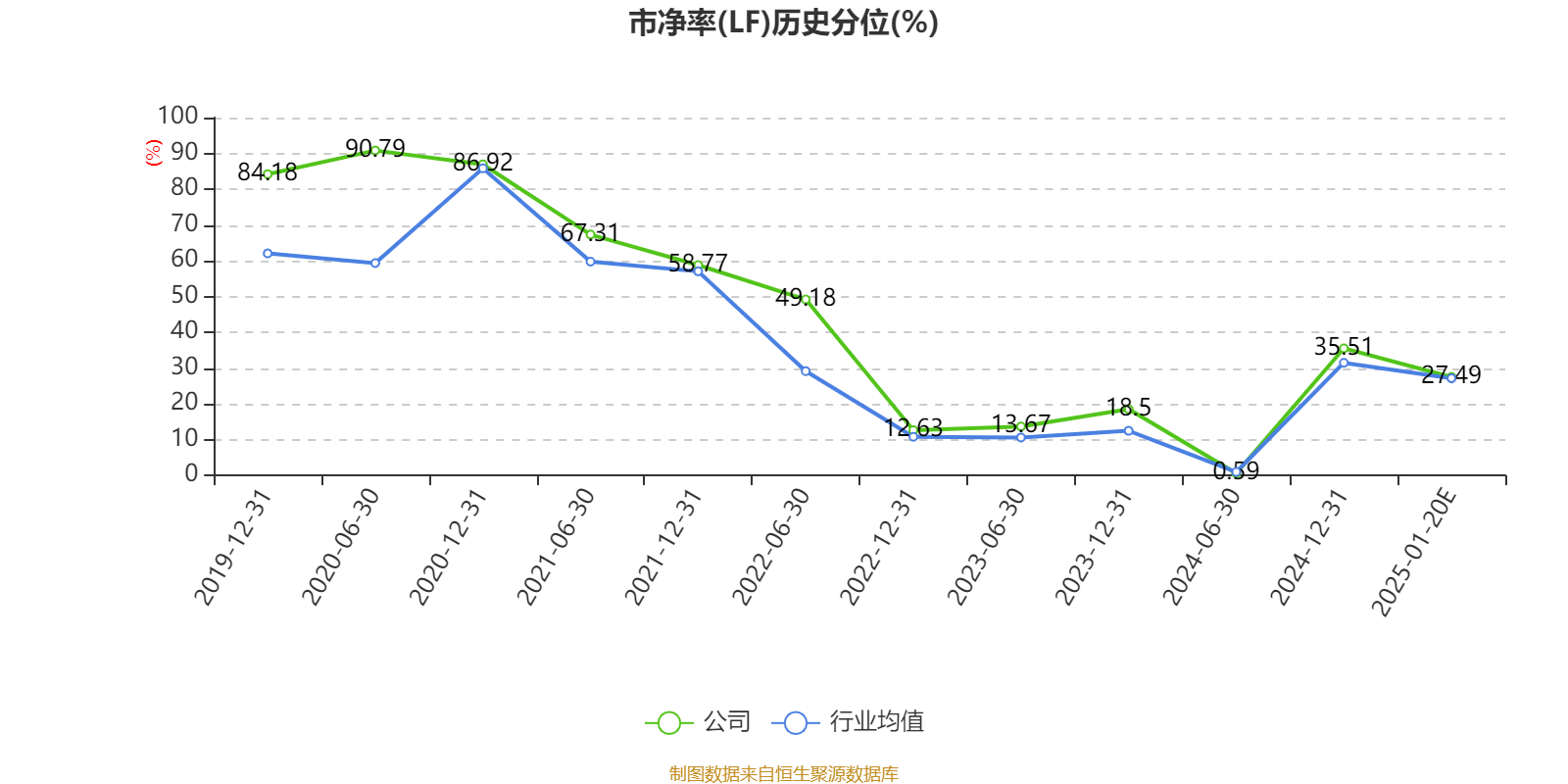 市盈率、市净率为负时,不显示当期分位数,会导致折线图中断。