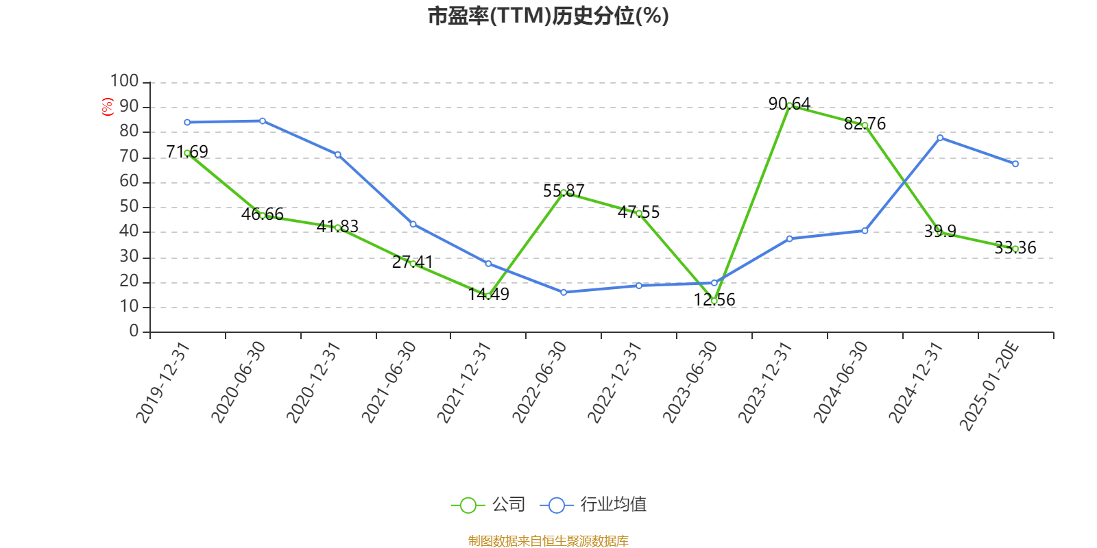 以本次披露业绩预告均值计算,公司近年市盈率(TTM)图如下所示: