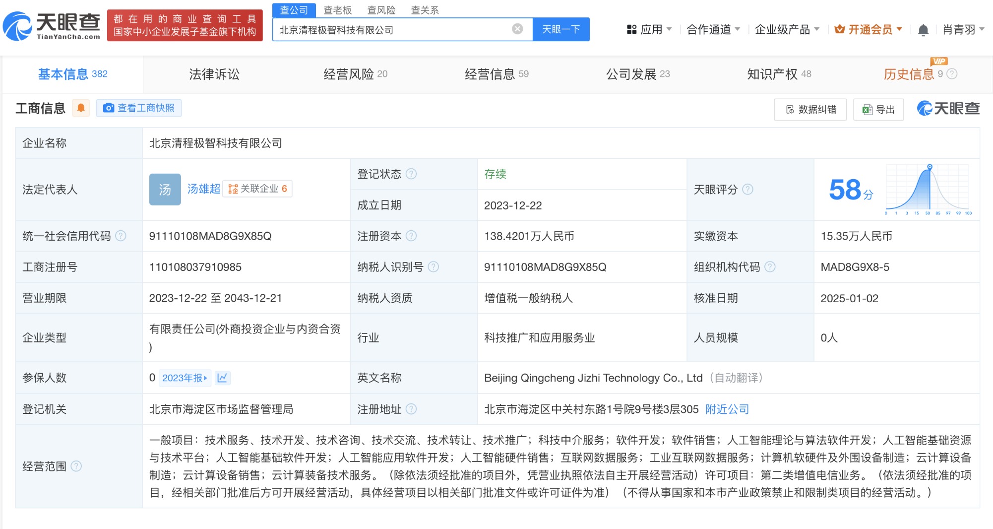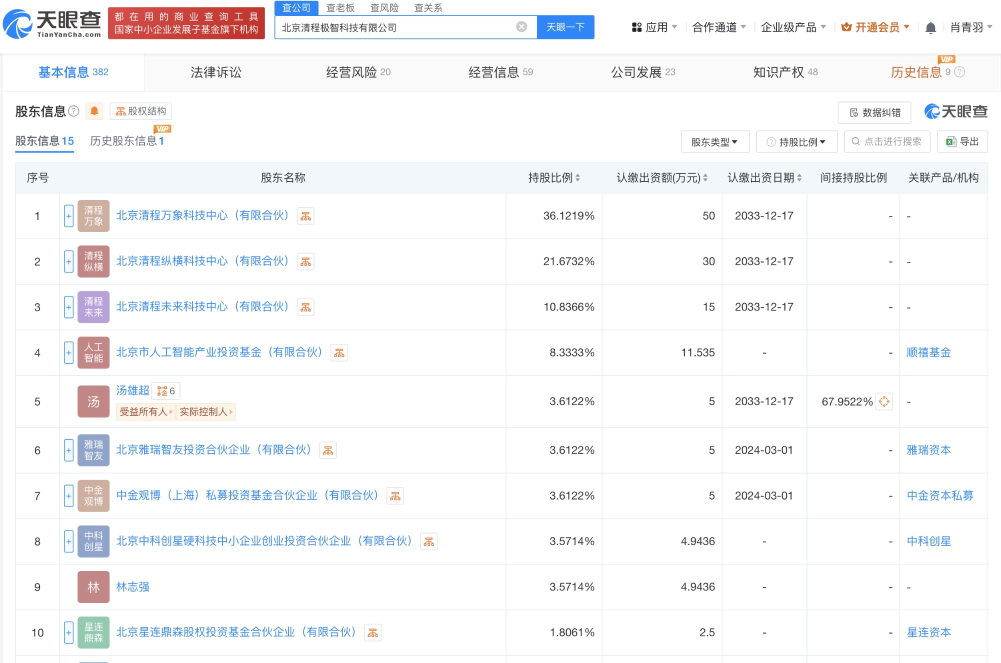 北京清程极智科技有限公司成立于2023年12月,法定代表人为汤雄超,经营范围含人工智能理论与算法软件开发、人工智能基础资源与技术平台、人工智能基础软件开发、人工智能应用软件开发、人工智能硬件销售、互联网数据服务等,现由北京清程万象科技中心(有限合伙)、北京清程纵横科技中心(有限合伙)等及上述新增股东共同持股。公开信息显示,清程极智是一家智能算力系统软件服务商。