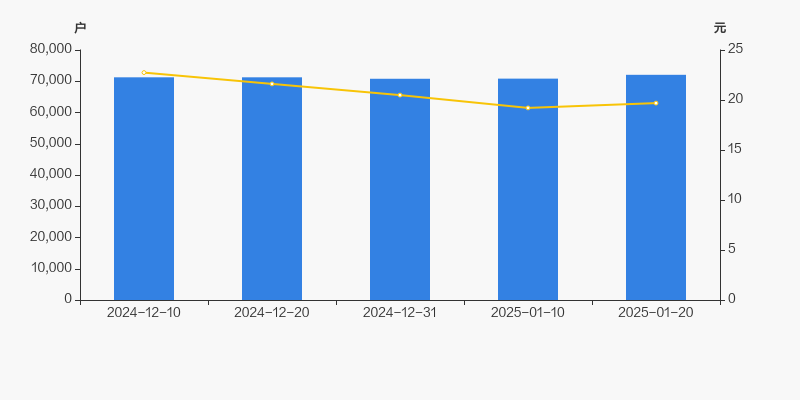 截至2025年1月20日,公司最新总股本为6.38亿股,其中流通股本为6.31亿股。户均持有流通股数量由上期的8906股下降至8755股,户均流通市值17.24万元。