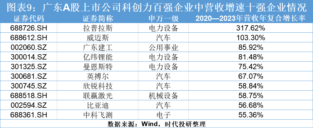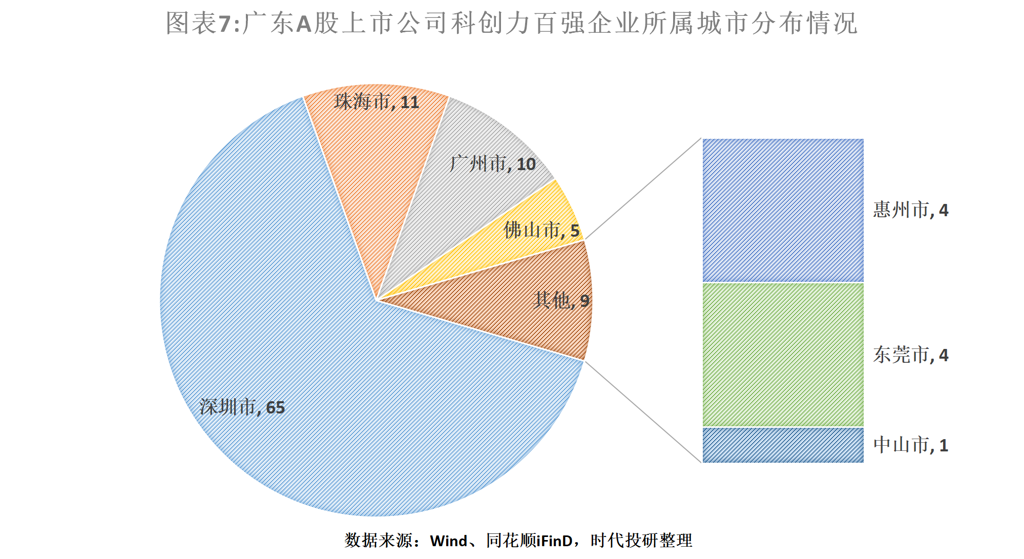 4.科创力百强企业多来自战略性新兴产业。科创力百强企业大多属于半导体、生物医药、新能源等战略性新兴产业,是推动广东经济转型升级和高质量发展的重要力量。