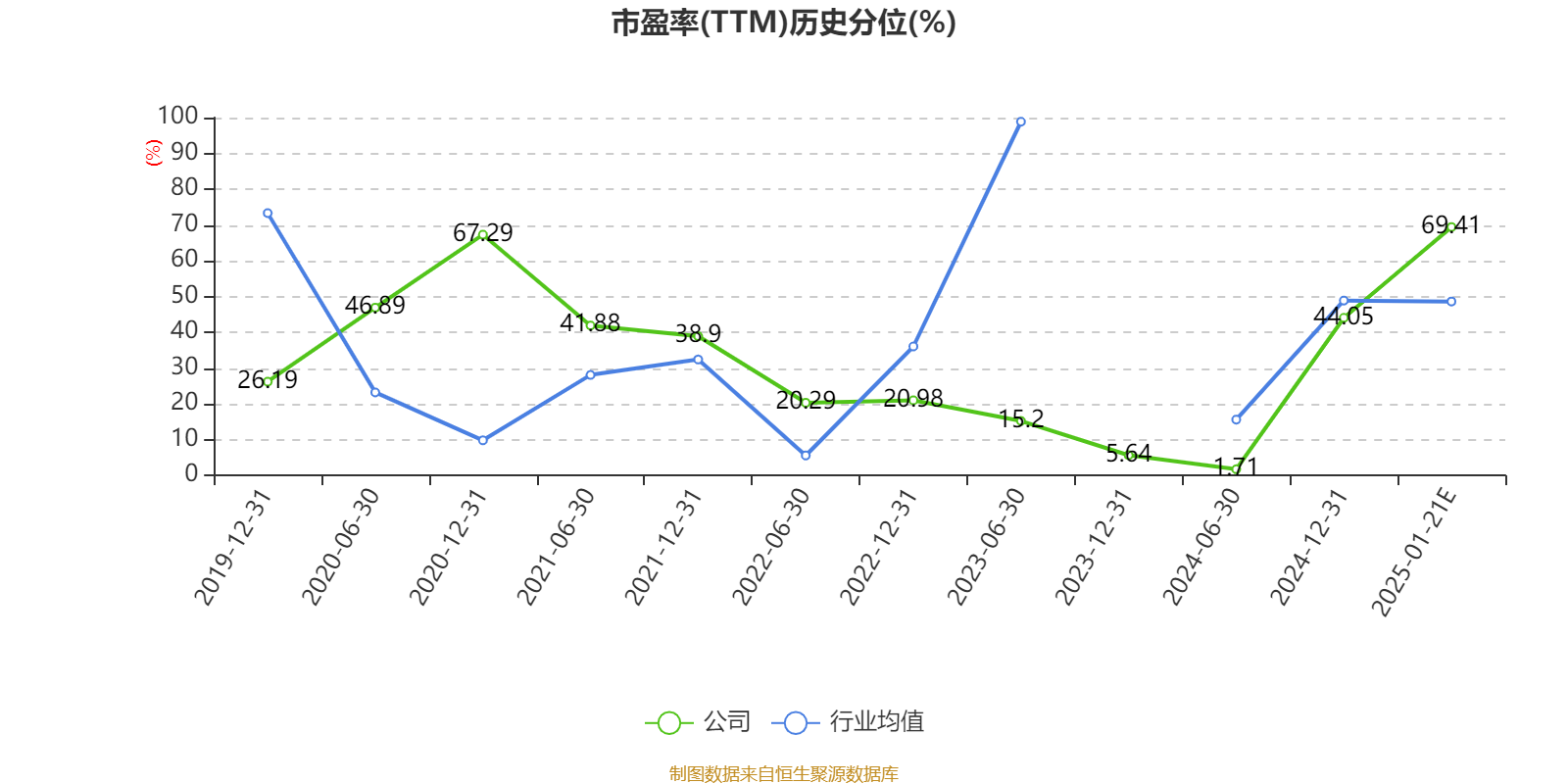 以本次披露业绩预告均值计算,公司近年市盈率(TTM)图如下所示: