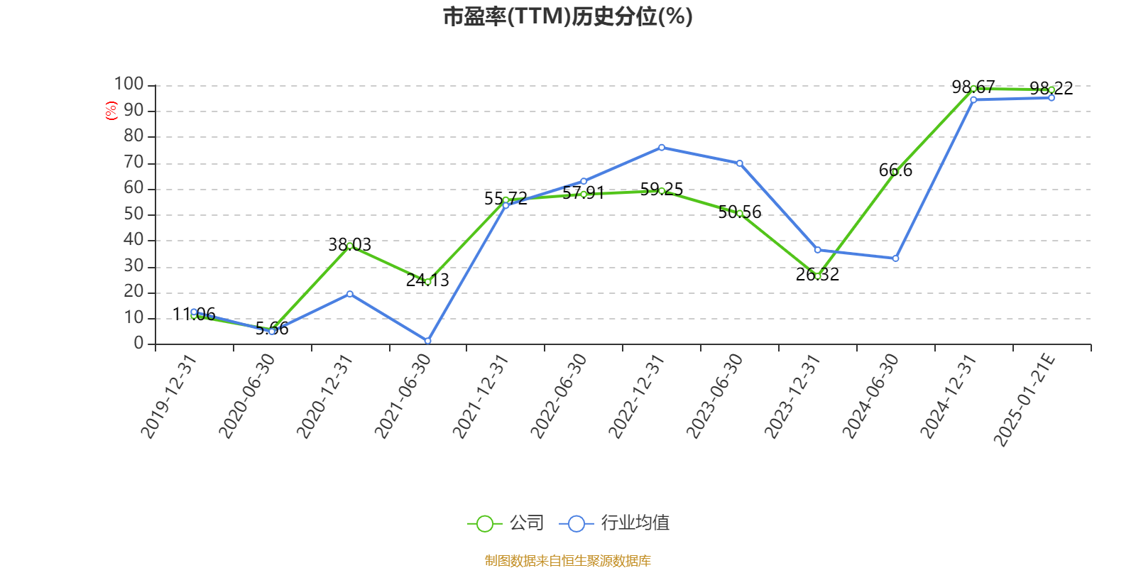 以本次披露业绩预告均值计算,公司近年市盈率(TTM)图如下所示: