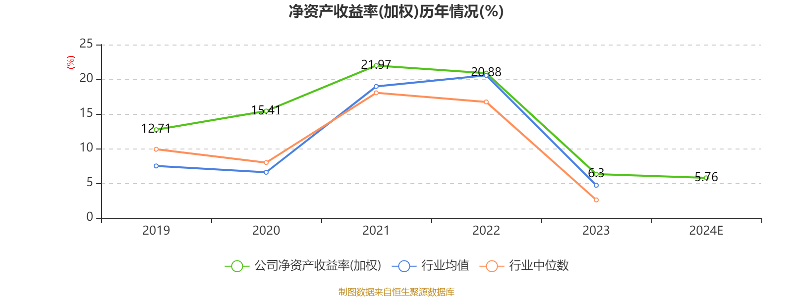 数据显示,2024年公司加权平均净资产收益率为5.76%,较上年同期下降0.54个百分点。