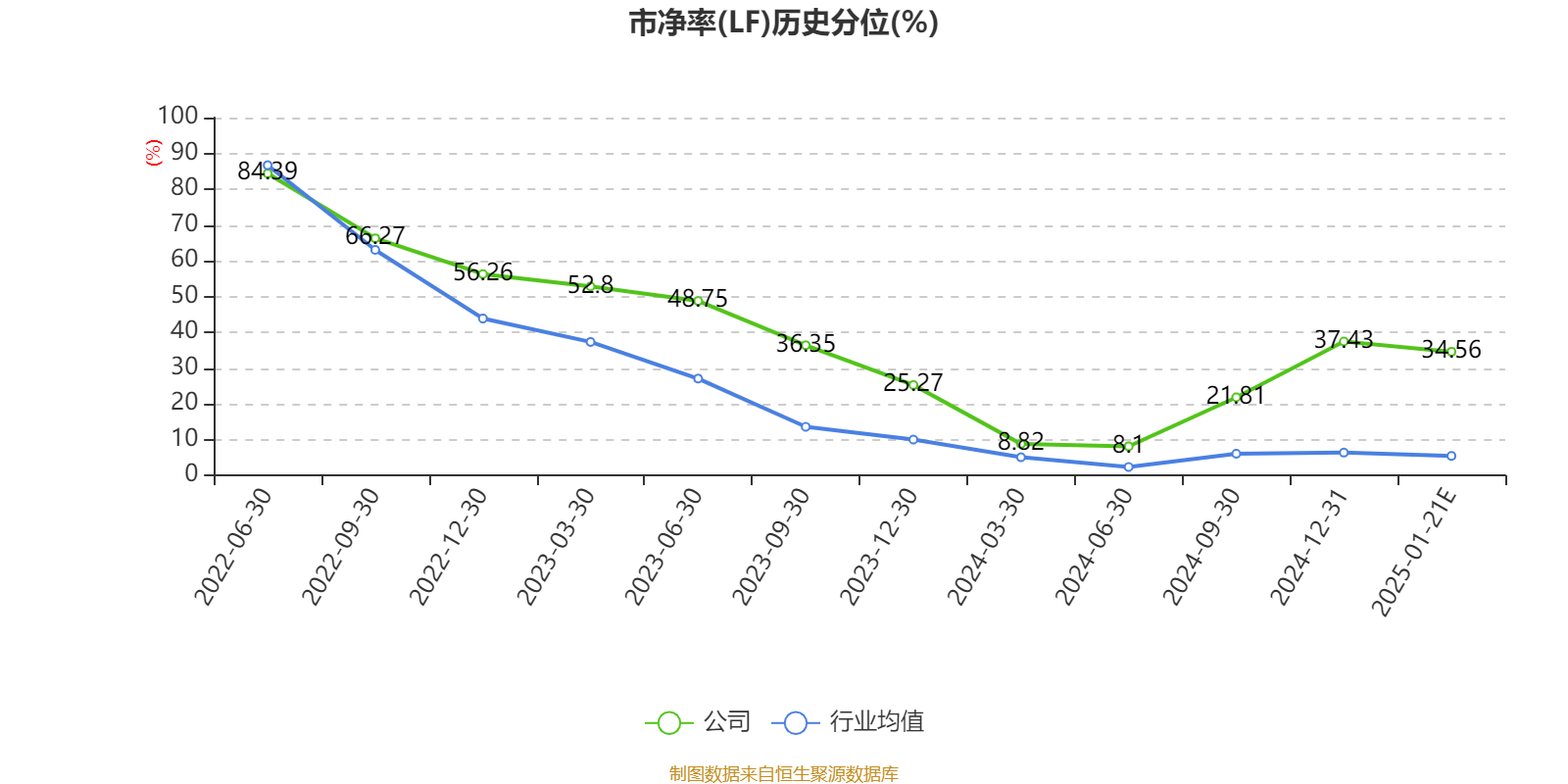 市盈率、市净率为负时,不显示当期分位数,会导致折线图中断。