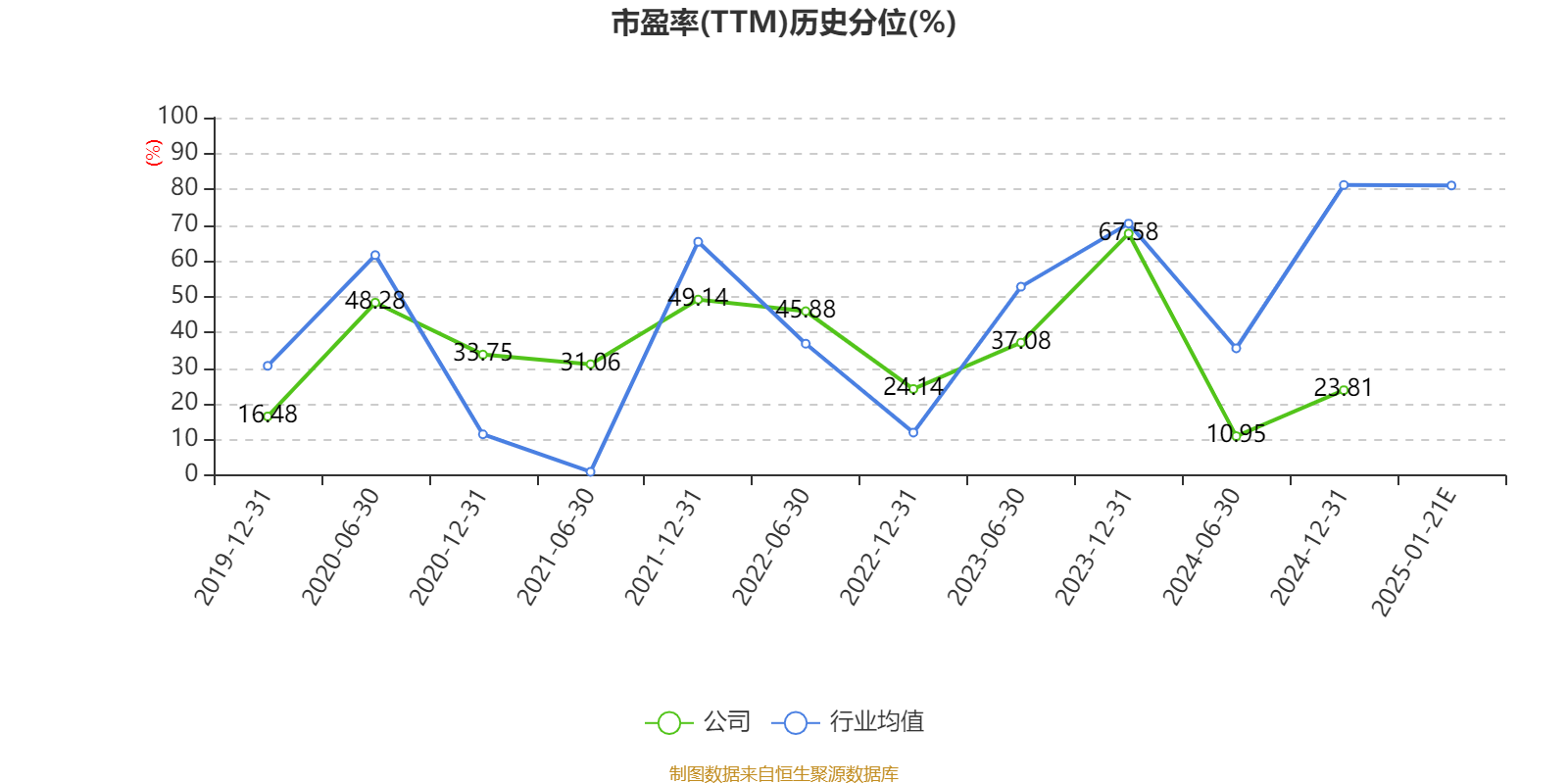 以本次披露业绩预告均值计算,公司近年市盈率(TTM)图如下所示: