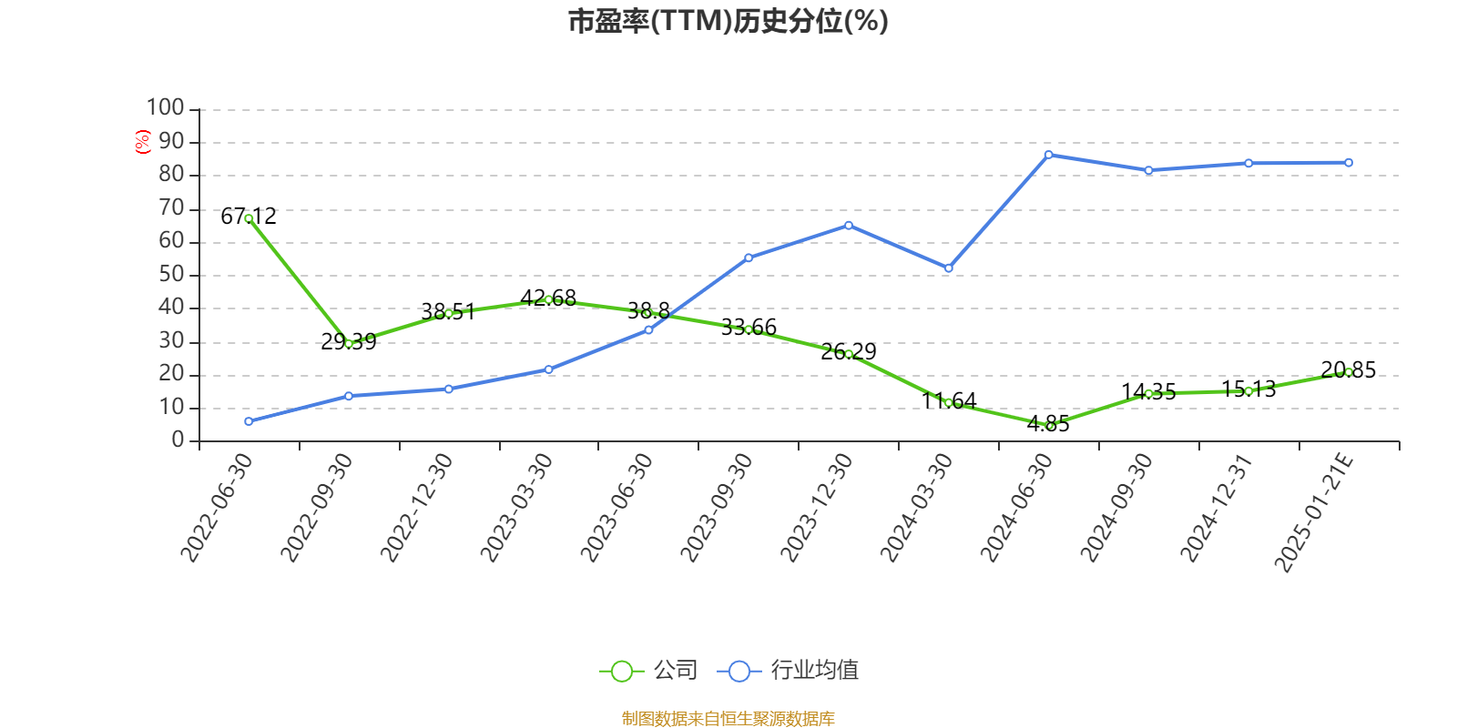 以本次披露业绩预告均值计算,公司近年市盈率(TTM)图如下所示: