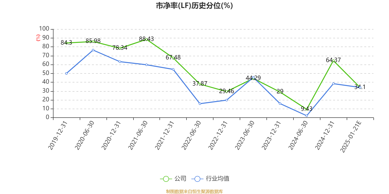 市盈率、市净率为负时,不显示当期分位数,会导致折线图中断。