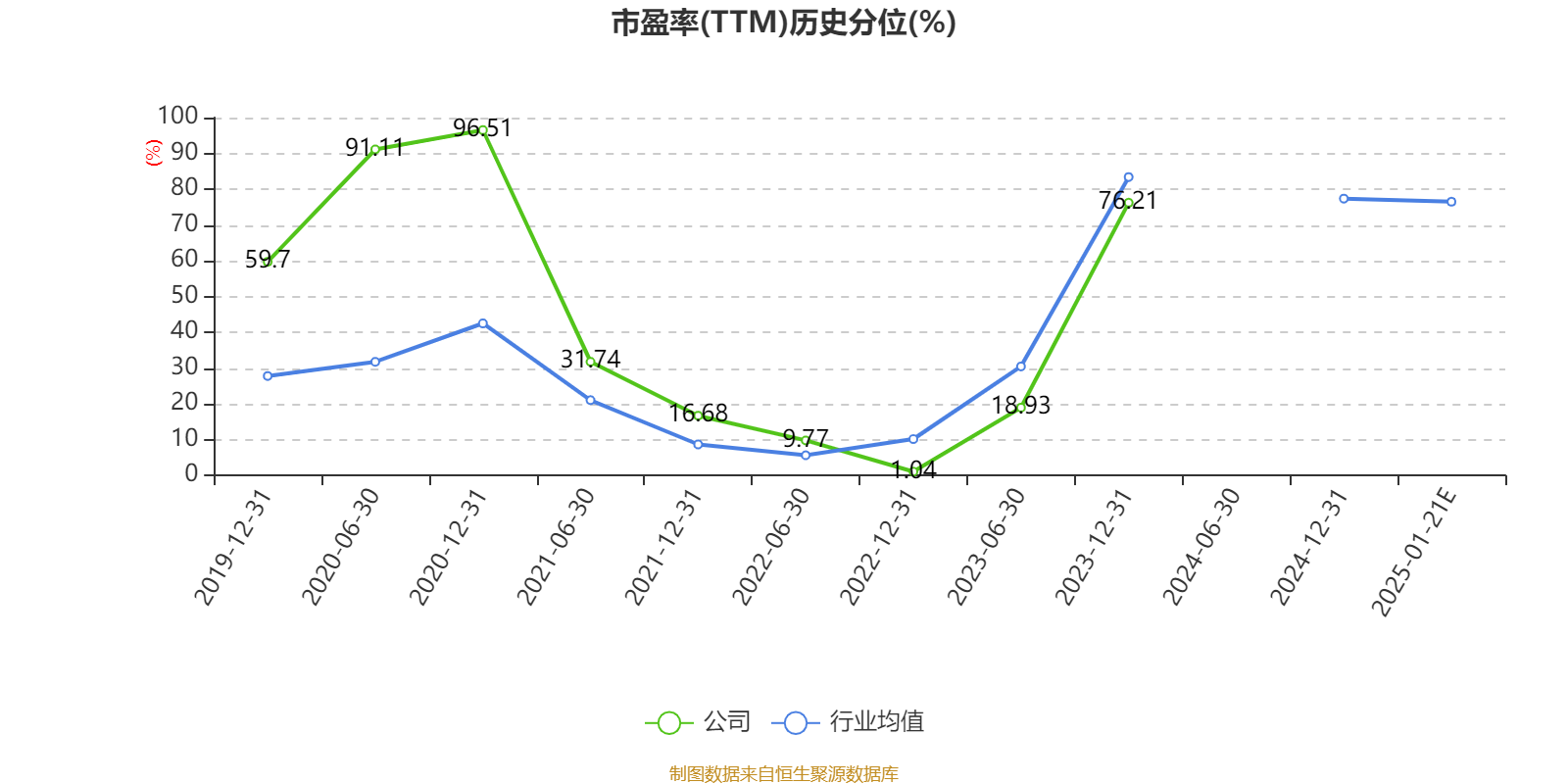 以本次披露业绩预告均值计算,公司近年市盈率(TTM)图如下所示: