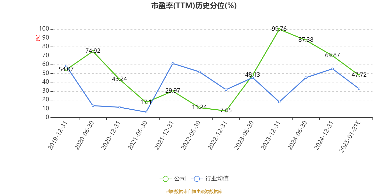 以本次披露业绩预告均值计算,公司近年市盈率(TTM)图如下所示: