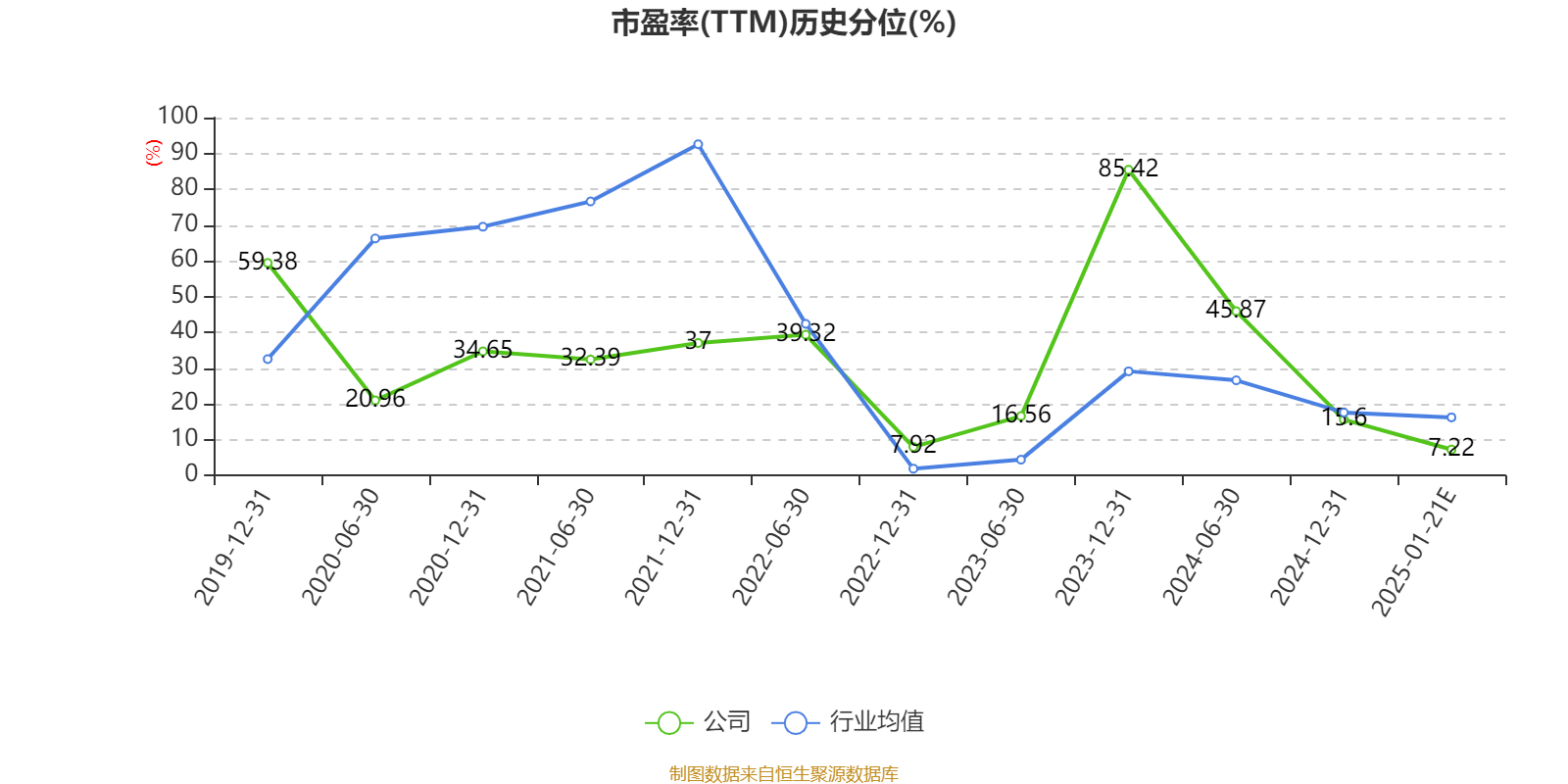 以本次披露业绩预告均值计算,公司近年市盈率(TTM)图如下所示: