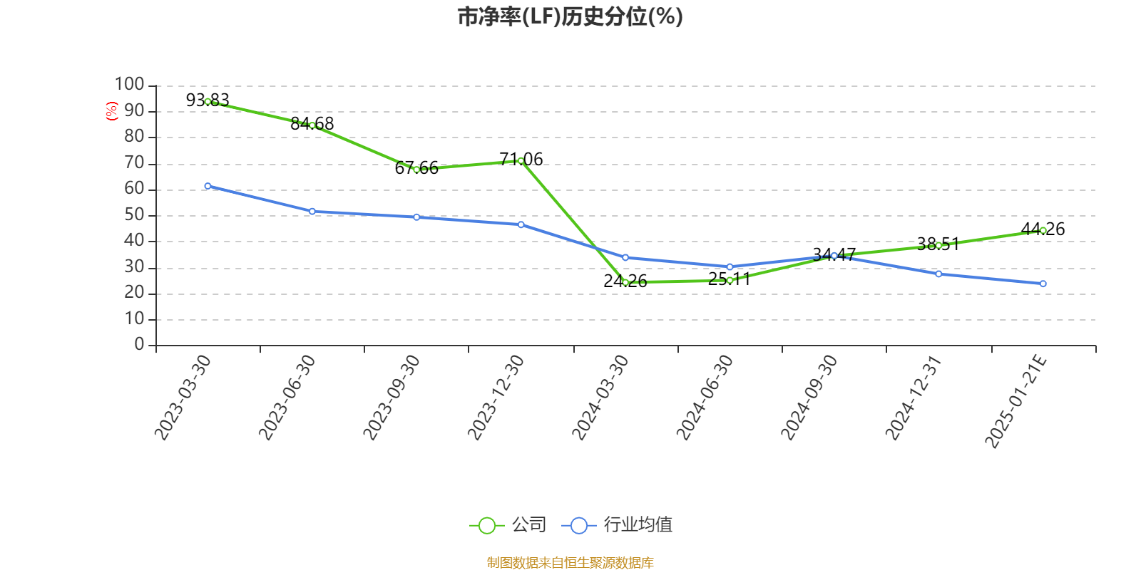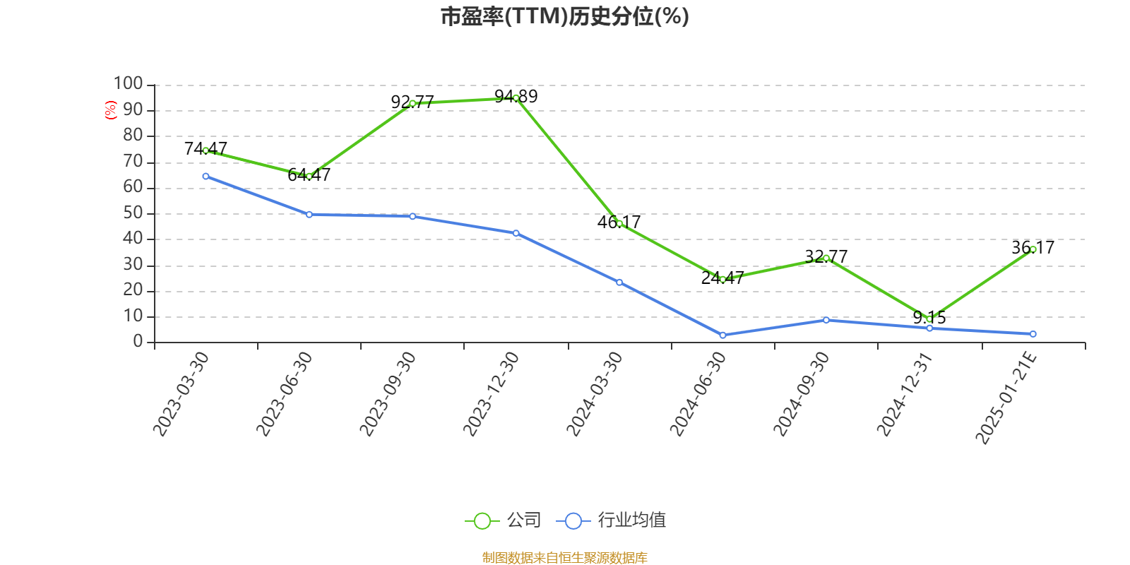 市盈率、市净率为负时,不显示当期分位数,会导致折线图中断。