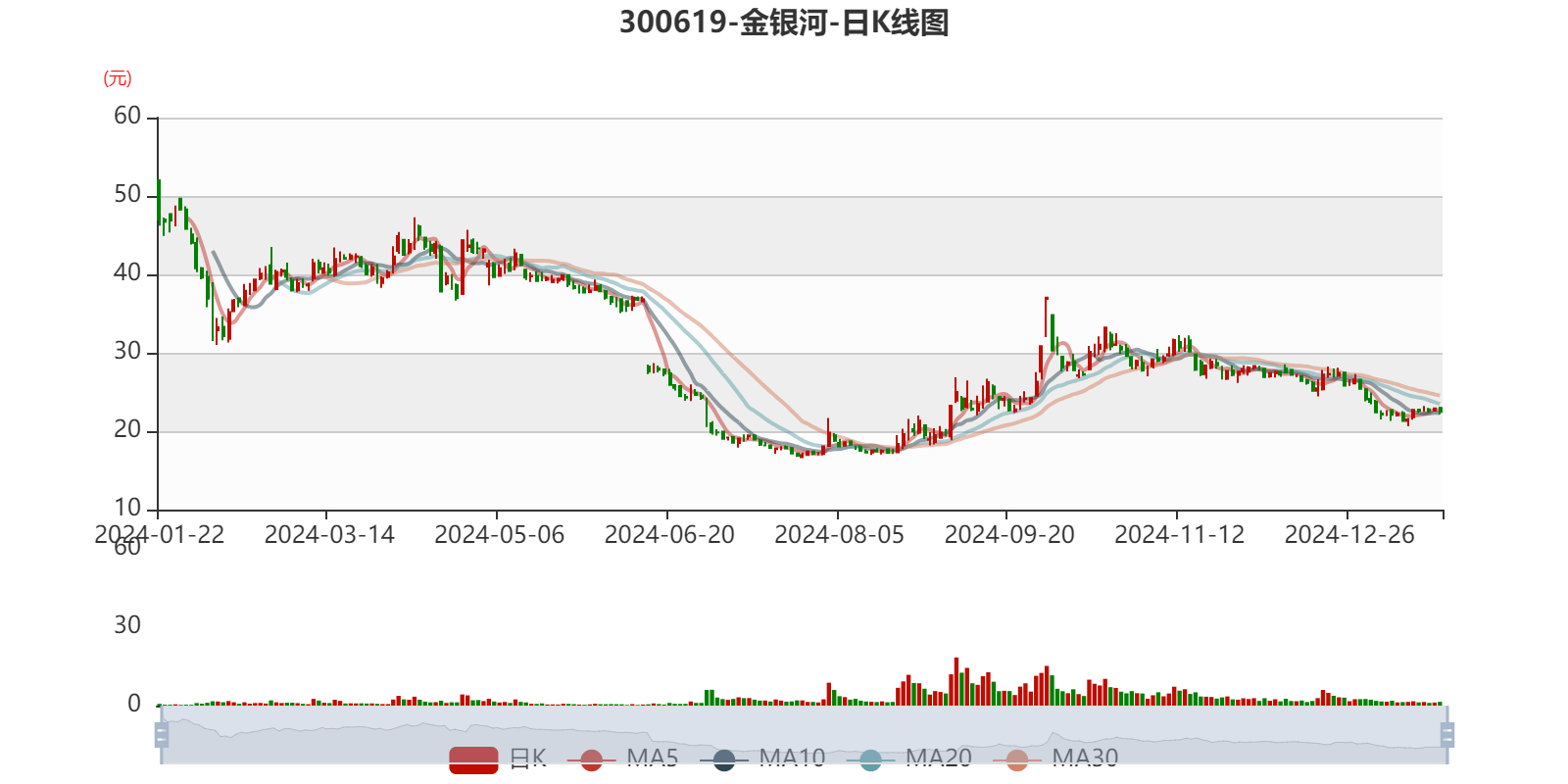 中证智能财讯金银河(300619)1月21日晚间披露2024年度业绩预告,预计2024年归母净利润亏损6800万元至8800万元,上年同期盈利9371万元;扣非净利润亏损7800万元至9800万元,上年同期盈利8517万元。以1月21日收盘价计算,金银河目前市盈率(TTM)约为-34.18倍至-44.23倍,市净率(LF)约1.84倍,市销率(TTM)约1.84倍。