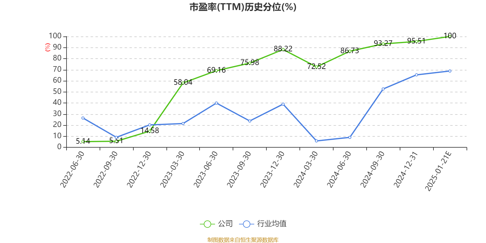 以本次披露业绩预告均值计算,公司近年市盈率(TTM)图如下所示: