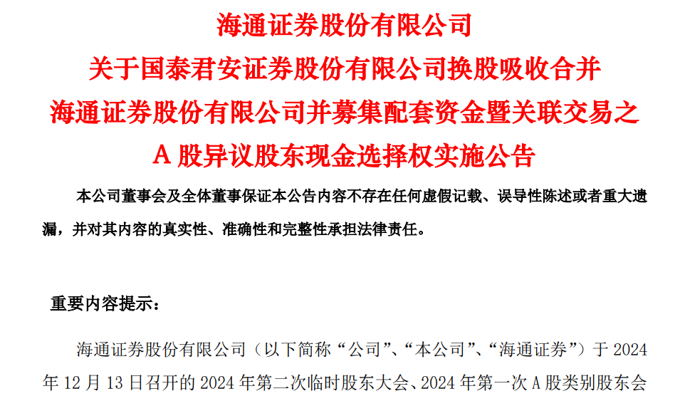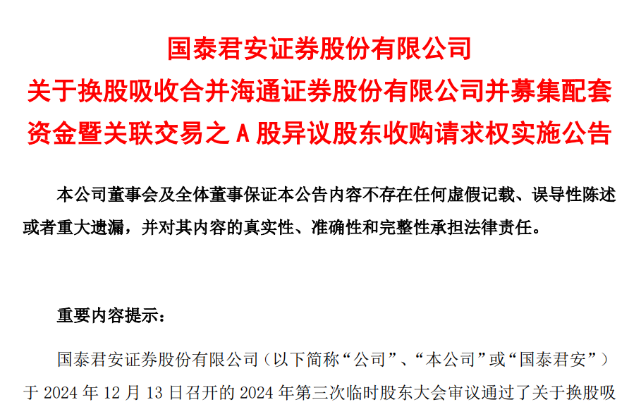 【导读】国泰君安、海通证券披露A股异议股东行权安排,这些信息值得关注