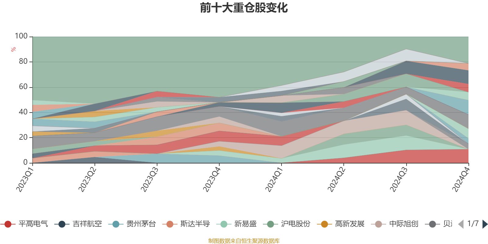 截至2024年四季度末,基金十大重仓股分别是长江电力、宁德时代、平高电气、许继电气、美的集团、中国移动、中国核电、海尔智家、格力电器、贝达药业。