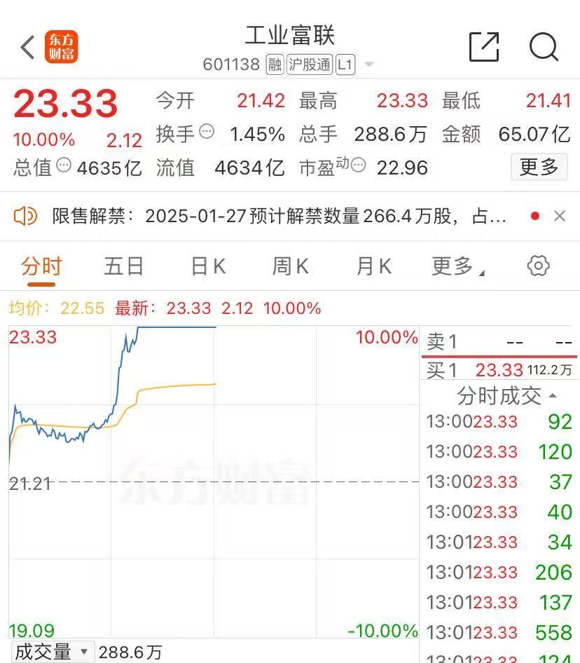 工业富联涨停,截至发稿,涨停板仍有逾112万手封单,最新市值为4634亿元。