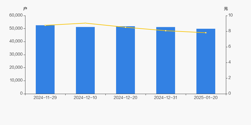 2024年11月29日至今,公司股东户数有所下降,区间跌幅为5.10%。2024年11月29日至2025年1月20日区间股价下降10.84%。