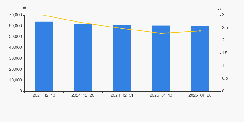 自2024年12月10日以来,公司股东户数连续4期下降,截至目前减幅为6.01%。2024年12月10日至2025年1月20日区间股价下降20.67%。