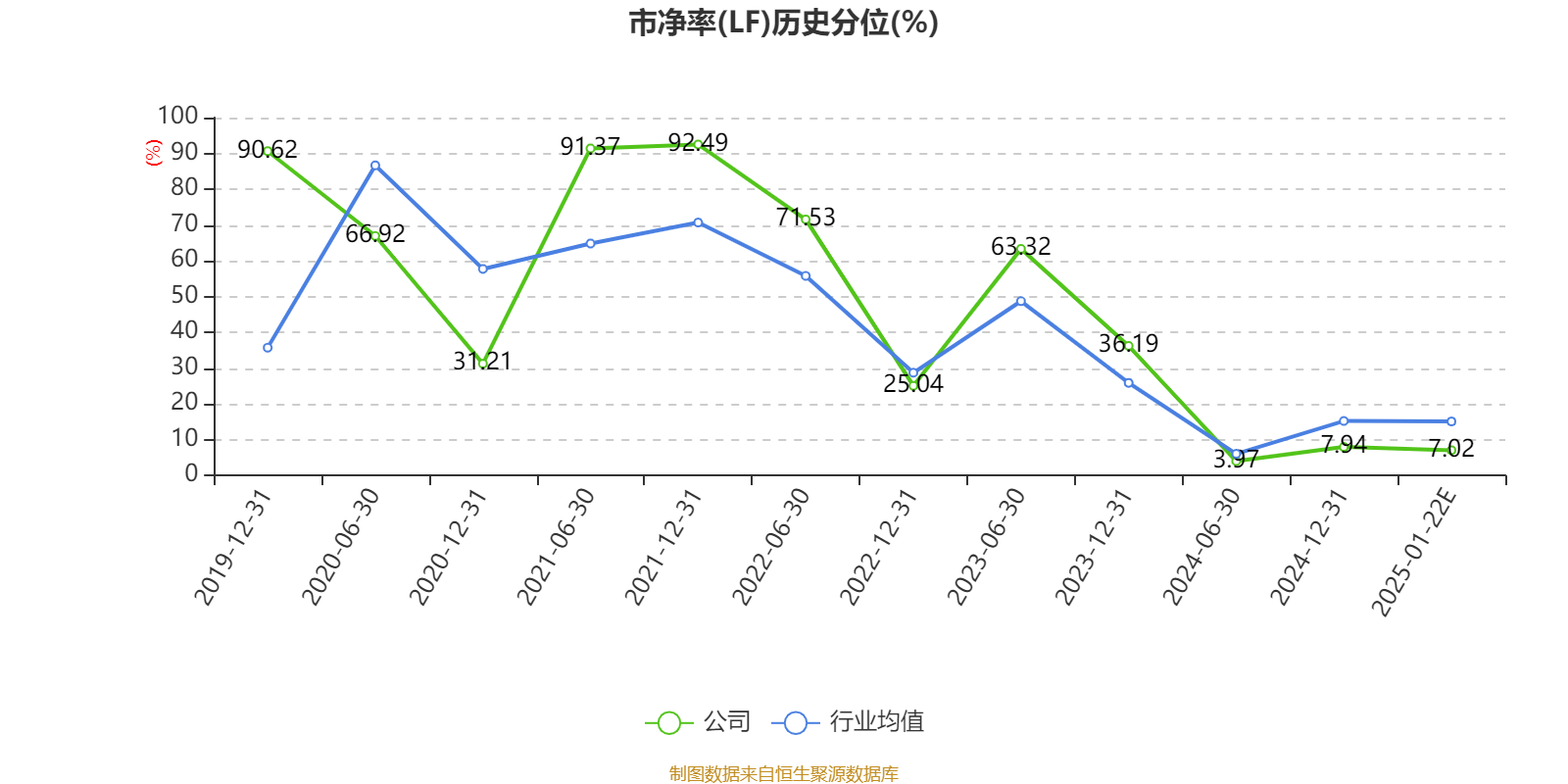 市盈率、市净率为负时,不显示当期分位数,会导致折线图中断。