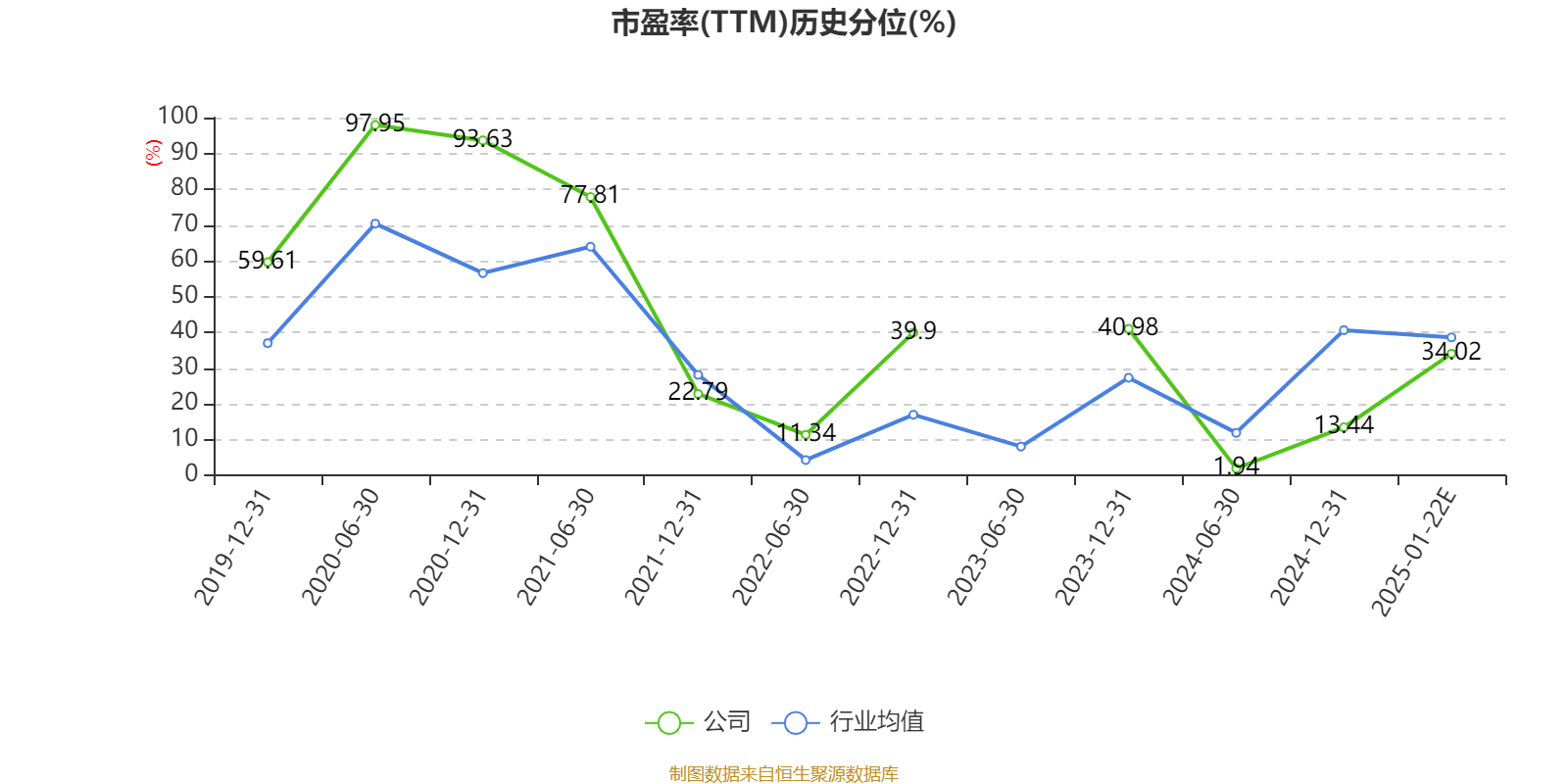 以本次披露业绩预告均值计算,公司近年市盈率(TTM)图如下所示: