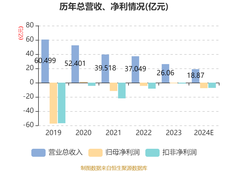 中证智能财讯 *ST鹏博(600804)1月22日晚间披露2024年度业绩预告,预计2024年实现营业收入18.87亿元;归母净利润亏损7.75亿元,上年同期亏损9324.55万元;扣非净利润亏损7.36亿元,上年同期亏损1.29亿元。以1月22日收盘价计算,*ST鹏博目前市盈率(TTM)约为-4.15倍,市净率(LF)约5.7倍,市销率(TTM)约1.7倍。