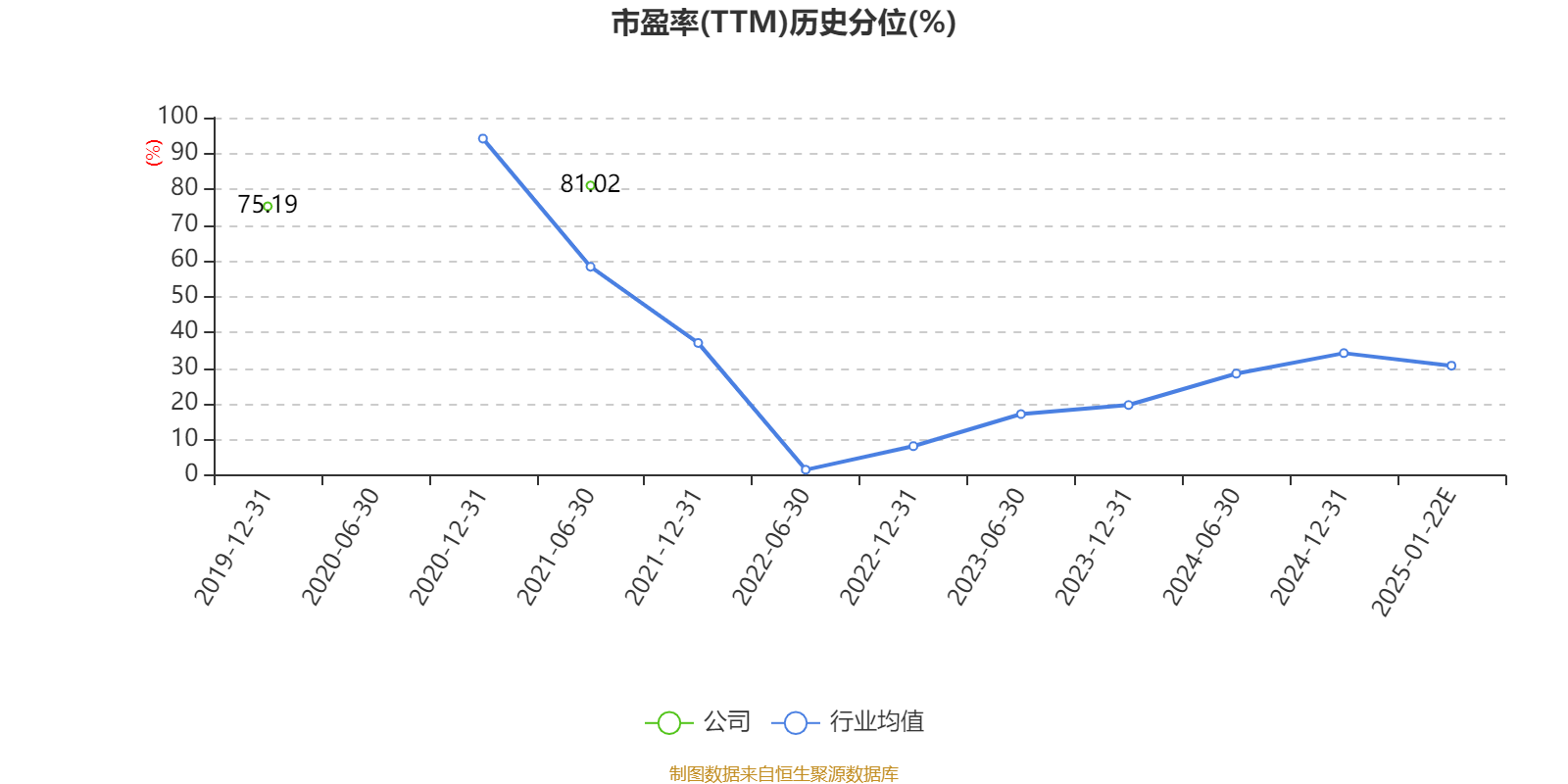 以本次披露业绩预告均值计算,公司近年市盈率(TTM)图如下所示: