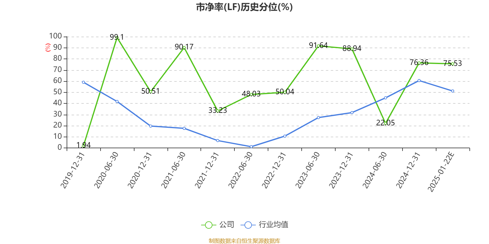 市盈率、市净率为负时,不显示当期分位数,会导致折线图中断。