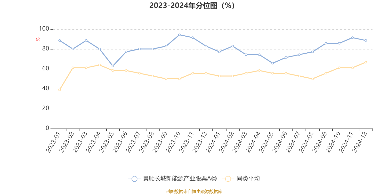 通过所选区间该基金净值增长率分位图,可以观察该基金与同类基金业绩比较情况。图为坐标原点到区间内某时点的净值增长率在同类基金中的分位数。